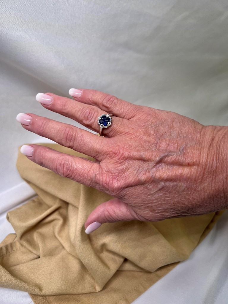 Horne Jewelry: 14K White Gold ring with Sapphire cluster and Diamond halo .20ctw.