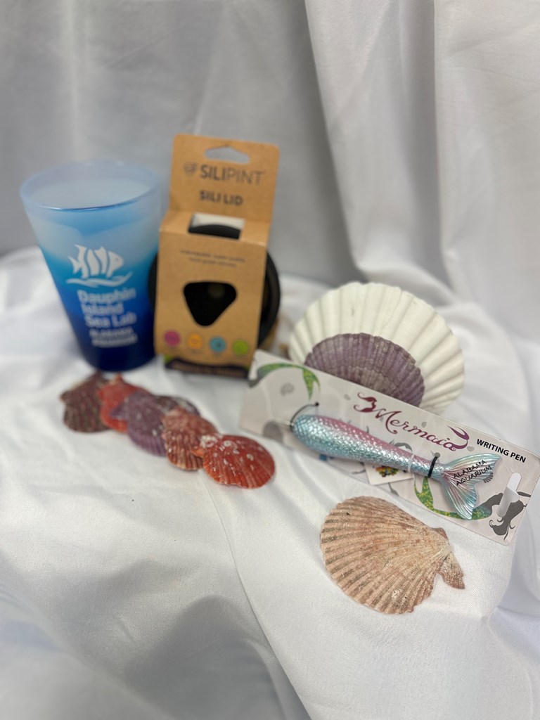 Alabama Aquarium: 4 Passes, Sili Pint Sili Lid, Cup, & a Mermaid Writing Pen: Through beautiful visual exhibits and engaging interactive exhibits, the Alabama Aquarium will leave you with a broader understanding of the interactions that take place in Mobile Bay, the fourth-largest estuary system in the United States.